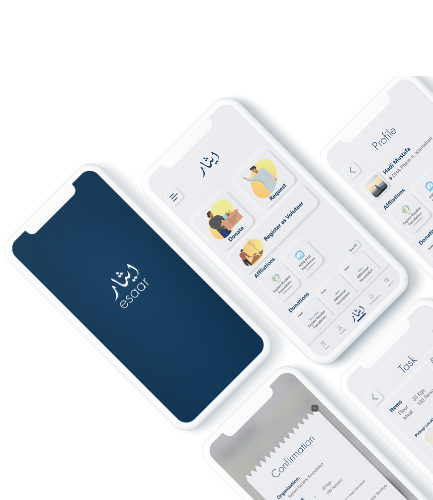 Esaar is a charity app that simplifies the way people make donations, ask for assistance and give their time to volunteer for humanitarian causes.